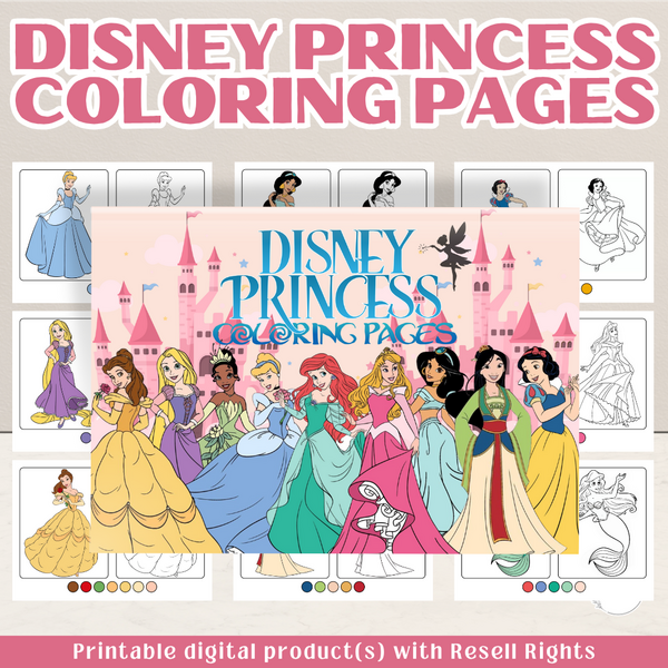 Disney Princess Coloring Pages PDF ā 40+ Printable Pages | Kids Activity Book | Instant Digital Download | Princess Coloring Book for Girls