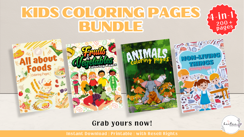 Kids Coloring Pages Bundle | Printable Coloring Book for kids by keiteedigitals
