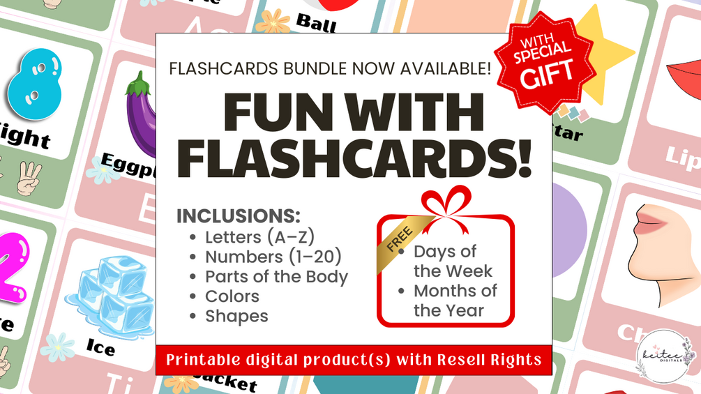 Flashcards for kids in PDF format with Resell Rights