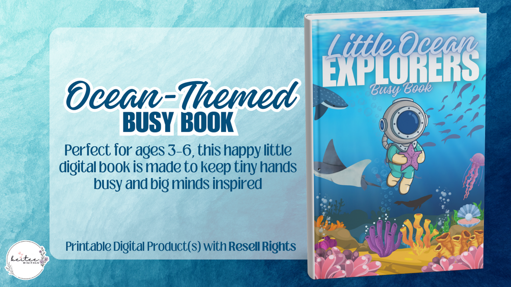 Ocean Themed Busy Book for ages 3-6 in PDF format with Resell Rights