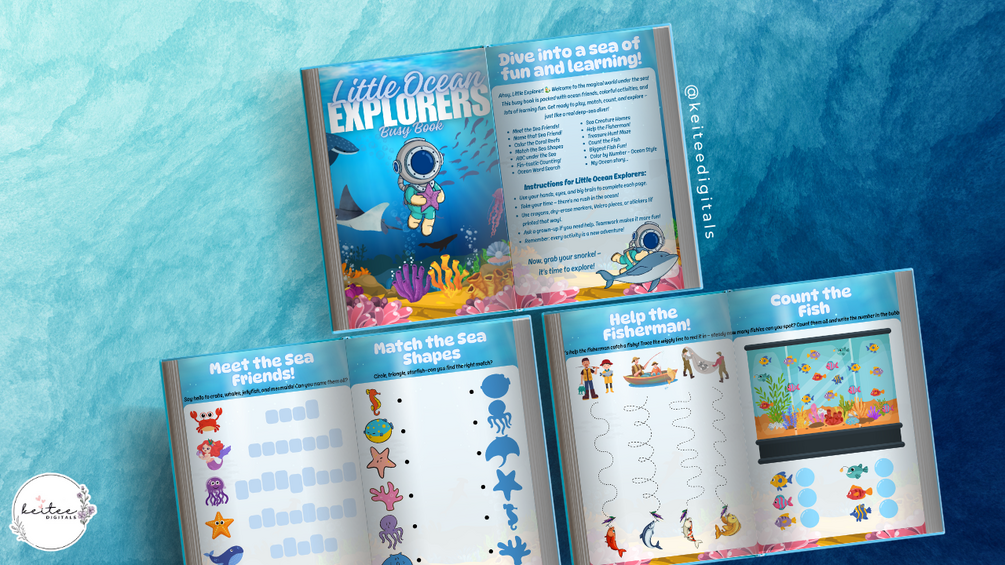 Ocean Themed Busy Book β Printable Little Ocean Explorers Learning Activities for kids by keiteedigitals