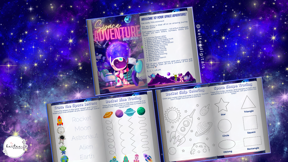 Space-Themed Busy Book | Printable Activity Pack for Ages 3-6 by keiteedigitals